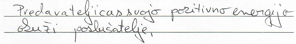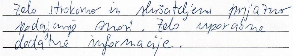 "Pri delu z go. mag. Natascho Slemenjak Podobnik sem spoznala, da je ena najboljših predavateljic, ki sem jih srečala. Prenaša dobro energijo in zna navdušiti poslušalce." Nada